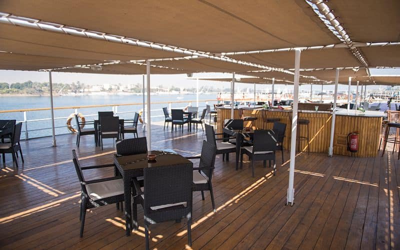 Se servirá té por la tarde en la cubierta superior mientras navega hacia Luxor a través de la Esclusa de Esna, donde podrá presenciar la vida local y tomar algunas fotos inolvidables.