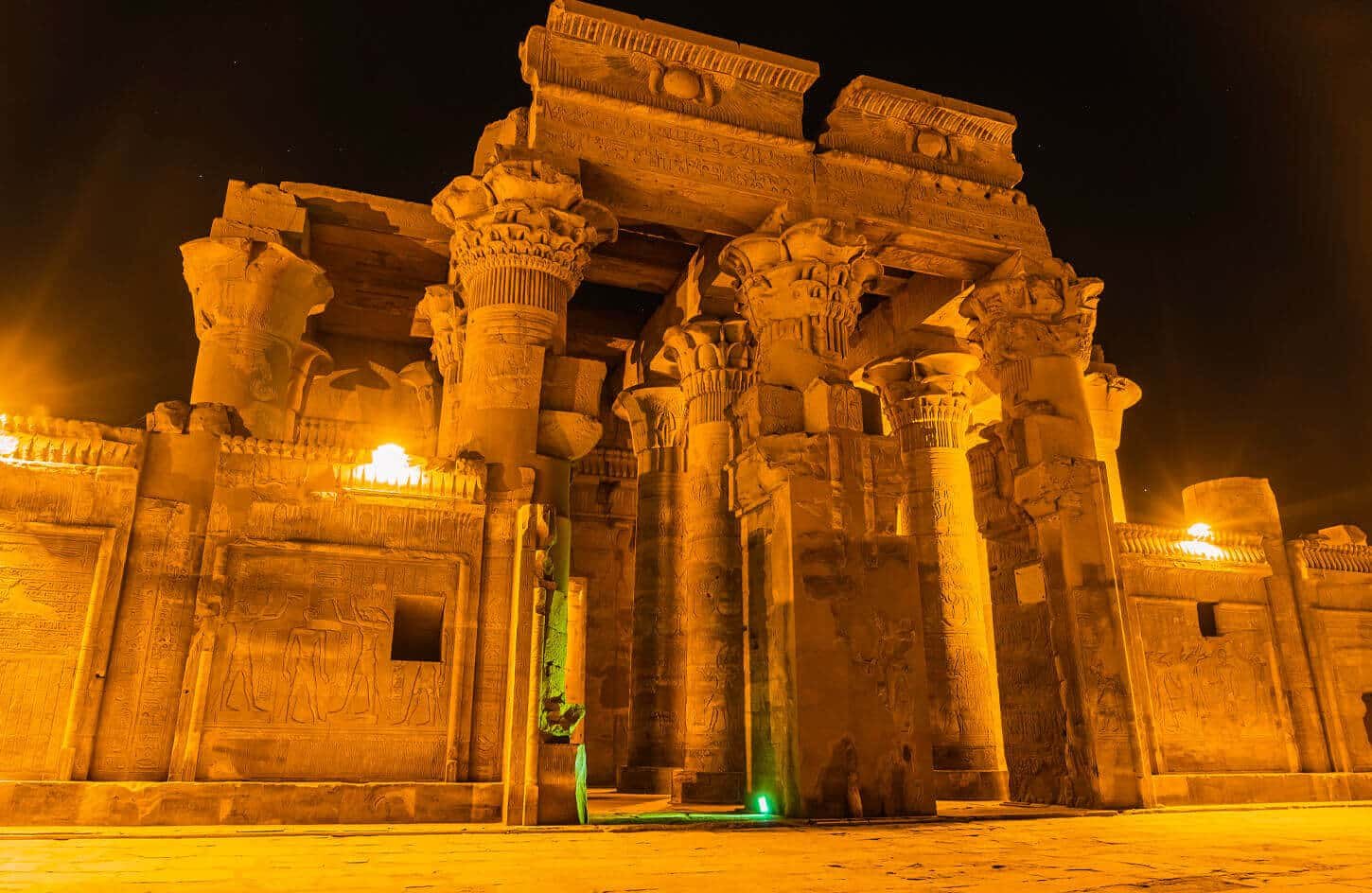 El templo de Kom Ombo está ubicado en un promontorio rocoso en una curva del Nilo donde, en tiempos antiguos, los cocodrilos sagrados solían bañarse en la orilla del río. Es uno de los templos más bellos del valle del Nilo y de Egipto. Fue creado para dos dioses: el dios local Sobek, un cocodrilo, y Haroeris, cuyo nombre significa «Gran Horus».