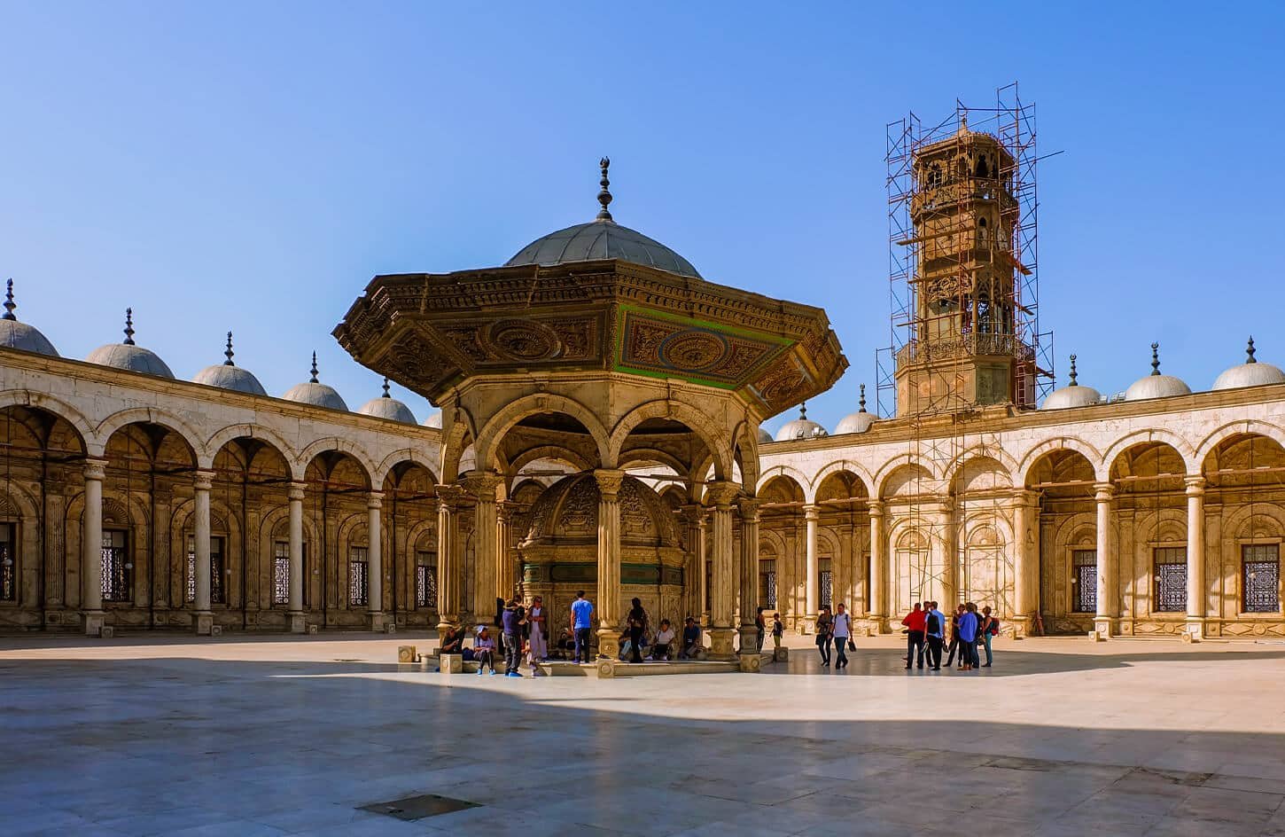 La Mezquita de Mohamed Ali fue inaugurada en 1848 d.C. dentro de la Ciudadela de Saladino. La construcción de esta mezquita se inspiró en las mezquitas turcas. Fue construida de piedra caliza. La mezquita tiene dos minbars, y alrededor de la cúpula de la mezquita hay 6 medallones, incluyendo los nombres de Dios y Mahoma, el Mensajero de Dios, así como los nombres de los cuatro califas bien guiados, que son Abu Bakr, Omar, Othman y Ali.