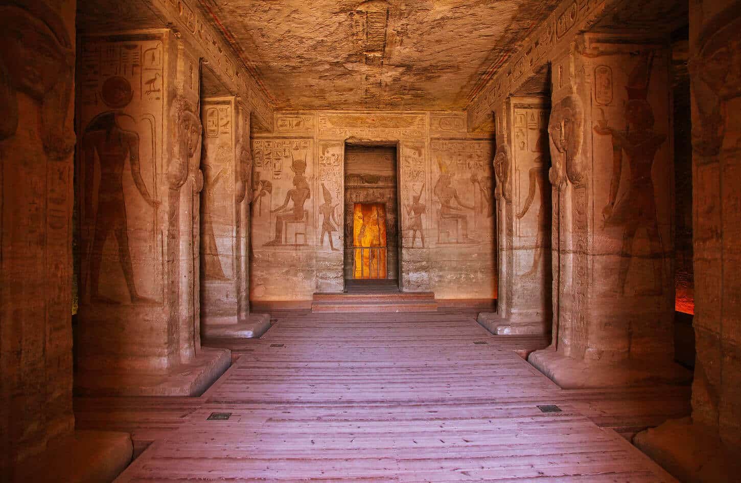 El Gran Templo, o Templo del Sol, impresiona por su majestuosidad y su dedicación a Ramsés II y a cuatro deidades divinas. Sumérgete en los secretos del pasado mientras tu guía egiptólogo te explica los intrincados detalles de las estatuas y relieves, así como los ingeniosos sistemas de protección contra inundaciones implementados por el gobierno egipcio y la UNESCO para preservar estas maravillas frente al impacto de la Presa Alta de Asuán.