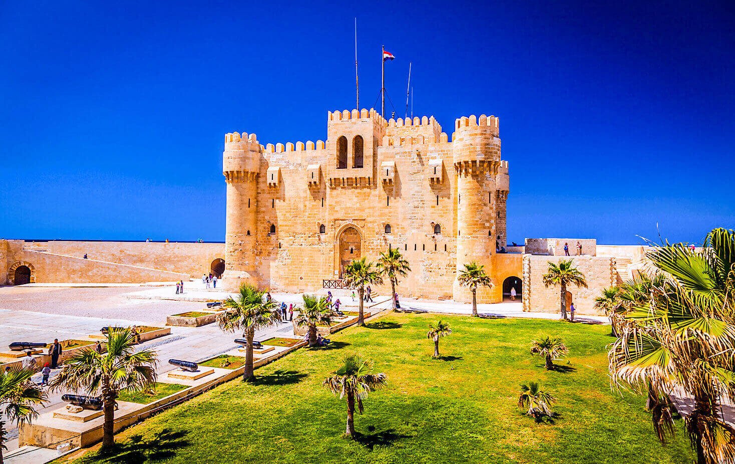 Refrescado, el recorrido continúa con la visita a la formidable Ciudadela de Qaitbay. Situada en la costa mediterránea, esta fortaleza del siglo XV se alza sobre el lugar donde se encontraba el legendario Faro de Alejandría, que guiaba a los navegantes de la antigüedad. Desde sus muros, contemplará impresionantes vistas del mar y sentirá la conexión eterna entre tierra y agua.
