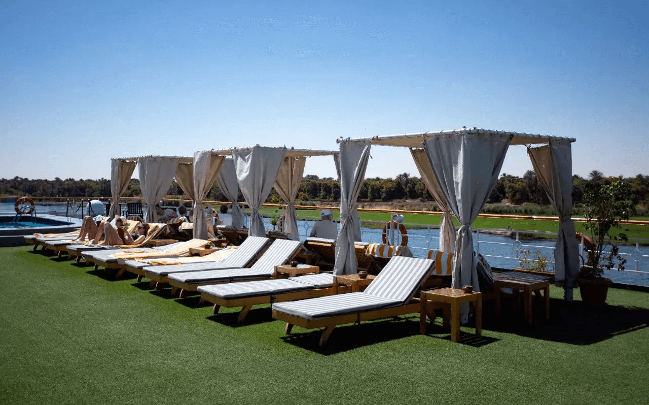 Se servirá té por la tarde en la cubierta superior mientras navega hacia Luxor a través de la Esclusa de Esna, donde podrá presenciar la vida local y tomar algunas fotos inolvidables.