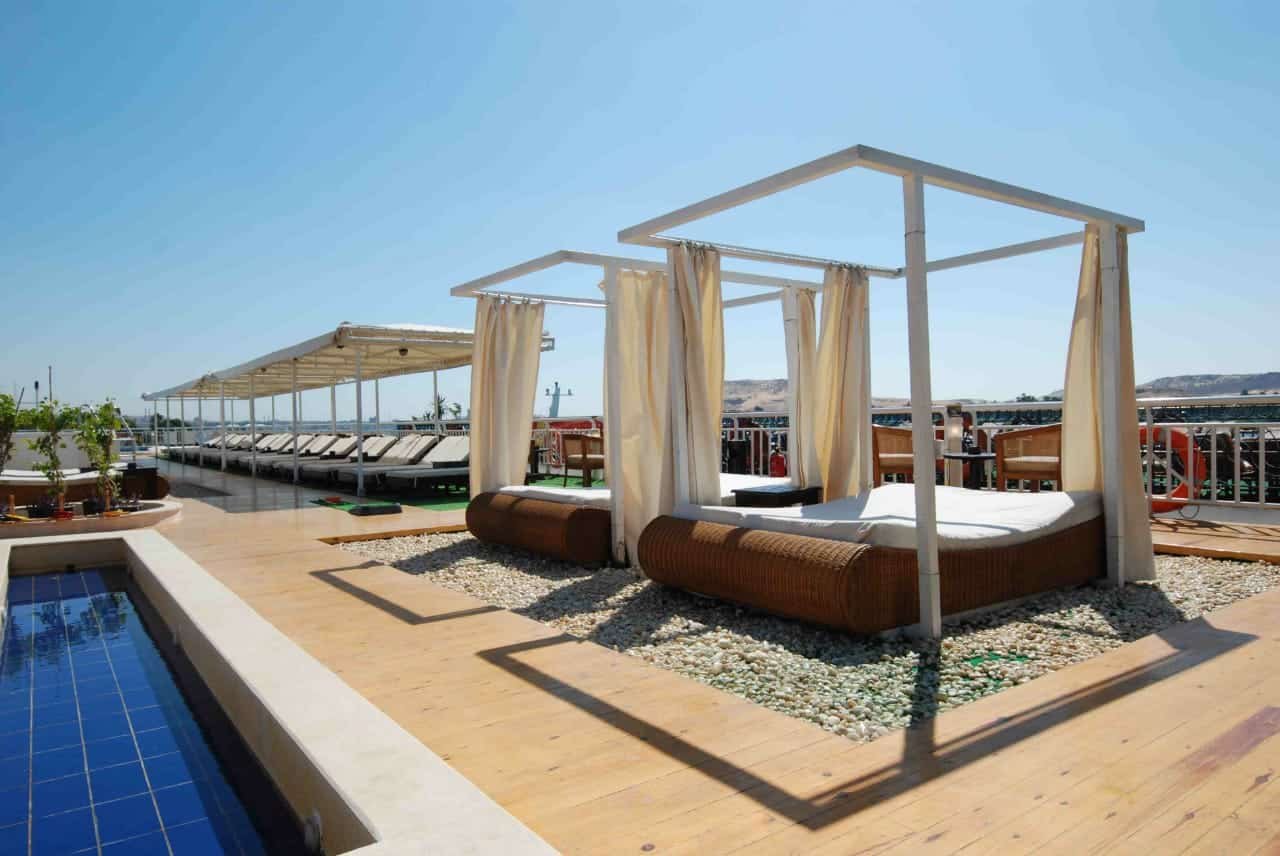 Se servirá té por la tarde en la cubierta superior mientras navega hacia Luxor a través de la Esclusa de Esna, donde podrá presenciar la vida local y tomar algunas fotos inolvidables.