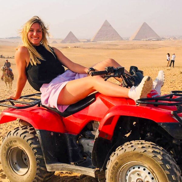 Vive la emoción de un safari por el desierto en quad con las majestuosas Pirámides de Giza como telón de fondo. Comienza la aventura con un traslado desde tu hotel hasta la zona del desierto, donde recibirás instrucciones de seguridad y una breve práctica de manejo del quad.